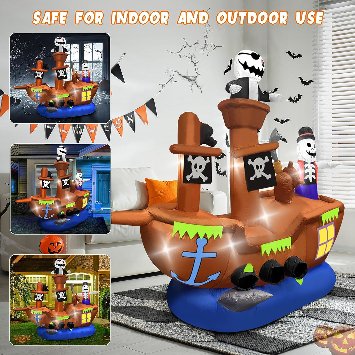 [Trick or Treat Halloween Decoration] - It is perfect for Halloween indoor/outdoor patio garden art decoration. The huge inflatable pirate ship will light up in your yard, attracting many kids to participate in this festival and adding a lot of fun.