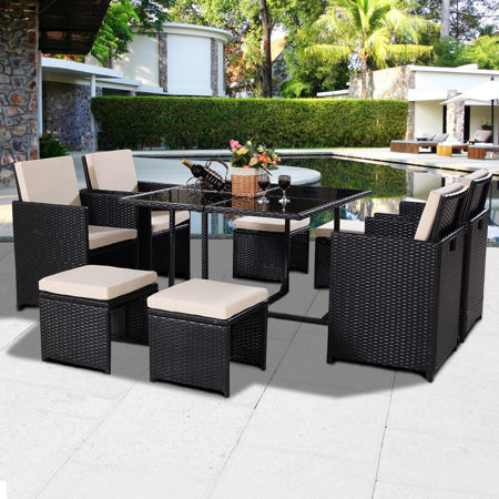 Our extra-large 9-piece rattan conversation set offers enough room to keep an entire party comfortable outside. There's a total of 7 seats spread across 3 sofa sections, a loveseat, and 2 armchairs. Every spot is comfortably cushioned, an ottoman lets you put your feet up, and two tables ensure surface space for everyone. Put on picnics and enjoy outdoor dining on the deck. Each piece is hand woven and outdoor-ready, making for a functional centerpiece. Get out, get comfy.